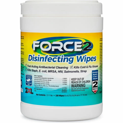 2XL Force2 Disinfecting Wipes 2 Minute Formula, 220 Wipes Per Canister, 6 Canisters/Case