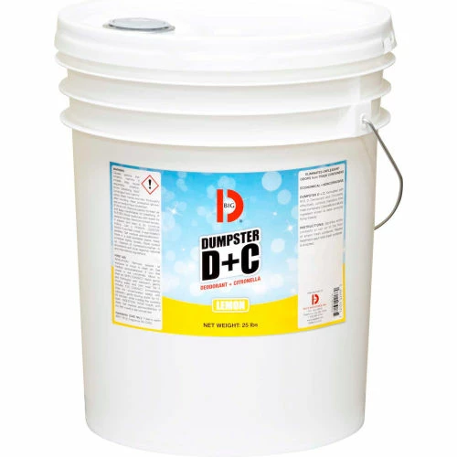 Big D Dumpster D plus C is formulated with special odor absorbing granules and Citronella (proven to deter annoying flying insects). This unique and safe formula is long-lasting and neutralizes odors on contact. Use to quickly and effectively deodorize garbage dumpsters, trash cans, containers and compactors, and garbage collection trucks. Lemon fragrance. 25 lb. container.