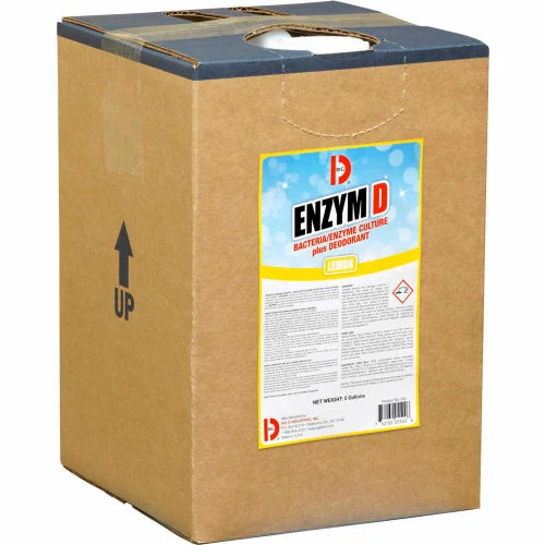 Enzym D digests organic waste and destroys odors associated with the decay of organic matter. It is highly effective in eliminating the odor causing organic slats associated with urine. Composed of specially bred bacterial spores that actually attack and break down uric acid molecules. Enzym D contains a malodor counteractant that deodorizes during decomposition. Lemon fragrance. 5 gallon pail.