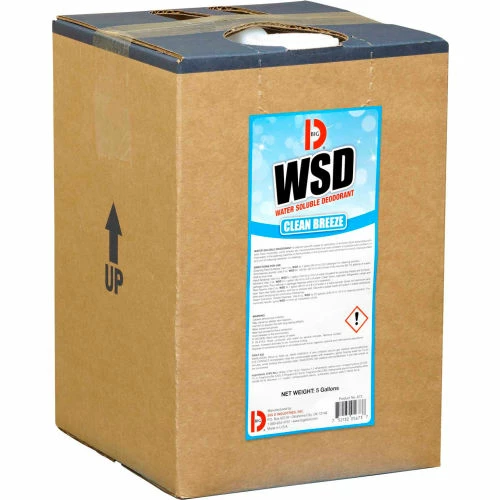 Big D Water Soluble Deodorant is the most versitile and economical deodorant in the marketplace containing true odorcounteractants, not masking agents. Simply dilute a small amount with water and you can eliminate most odor problems. May also be used in trigger sprayers, extractors or mop water. Safe to use on new generations of stain-resistant carpet as it contains no cationic surfactants. Clean Breeze fragrance. 5 Gallon pails.