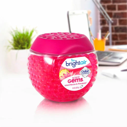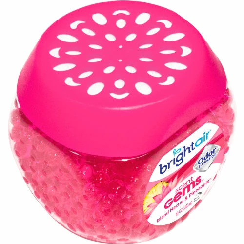 Bright Air Scent Gems Odor Eliminator, Island Nectar and Pineapple, Pink, 10 oz., 6/Case