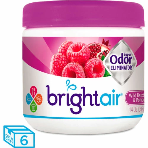 Bright Air Super Odor Eliminator, Wild Raspberry and Pomegranate, 14 oz. Jar, 6/Case