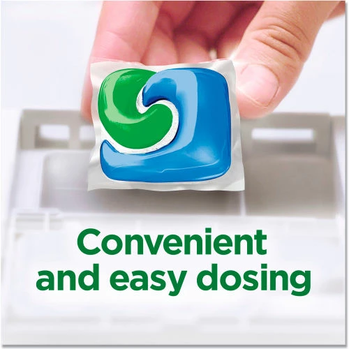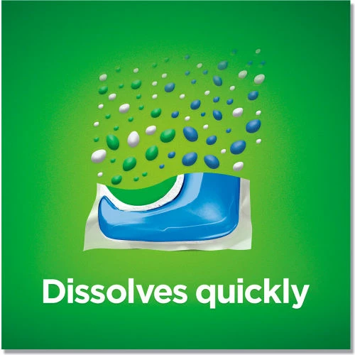 Powder and liquid dishwashing soaps are combined into one convenient pack. Scrub dishes clean while cutting grease. Easy to load without a mess.