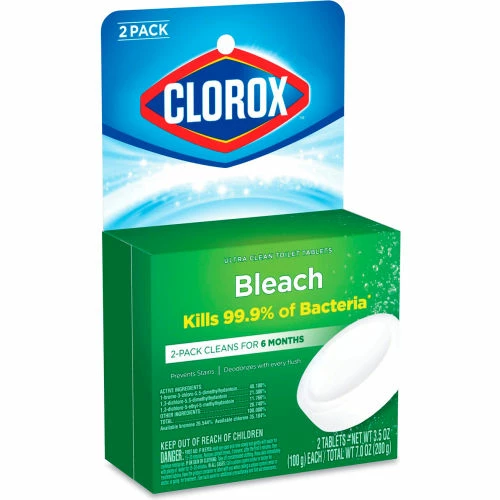 Clorox Ultra Clean Toilet Tablets kill 99.9% of bacteria and deodorizes your toilet with the power of Clorox bleach. This toilet bowl cleaning tablet, effectively cleans and prevents stains with each flush, eliminating the need to scrub every time. Each tablet delivers a long-lasting bleach clean. Simply drop a tablet into your toilet tank to continuously sanitize, deodorize and clean your toilet every time you flush. The dissolvable cleaning tablets help prevent tough stains and removes hard water, mineral deposits and limescale stains. Ideal for use in restaurants, cafeterias, offices, hotels, daycares and other commercial facilities. Keep your toilet bowl sparkling fresh and ultra clean with no mess and no fuss with the help of Clorox Ultra Clean Toilet Tablets.