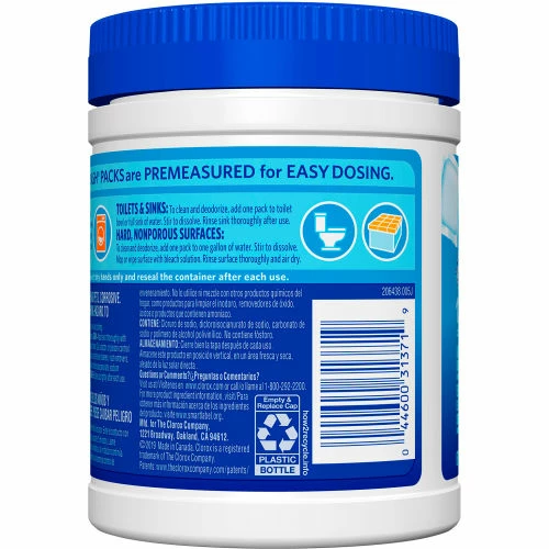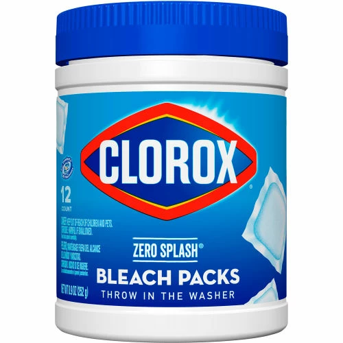 Clorox Zero Splash Bleach Packs bring you the Clorox Bleach clean in a convenient pre-measured solid pack for easy dosing. The solid bleach packs allow you to enjoy whiter laundry and cleaner surfaces without the splash and spills. Clorox Zero Splash Bleach Packs are a convenient solution for cleaning fabrics, toilets, sinks and hard, nonporous surfaces. These specially formulated packs activate upon contact with water for added control. Simply throw a Bleach Pack in the washer drum or drop a pack into a bucket, sink or toilet and stir to dissolve. The packs will dissolve fully in the wash. These compact bleach pods make it easy to grab a pack or two of these and go. No mess, just fresh clean clothes. Ideal for use in offices, laundromats, restaurants, and other commercial facilities. Clorox Zero Splash Bleach Packs let you clean with the same trusted Clorox power without worrying about bleach spills, splatters or other laundry mishaps.