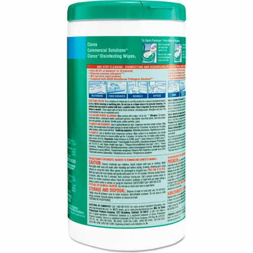 - From Clorox Commercial Solution, these wipes are ideal for use in schools, daycare centers, restaurants, hotels and other commercial facilities.