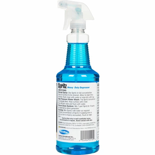 Spritz is an all purpose, heavy duty industrial strength cleaner and degreaser. Great for breaking down and cleaning away heavy oils, grease, grime and carbon deposits. For use on all industrial and farm mechanical parts, tools, machinery, engines, fuel oil related components, bicycles, refrigeration parts and much more. Safe on all hard surfaces, metals, tile, wood and concrete.