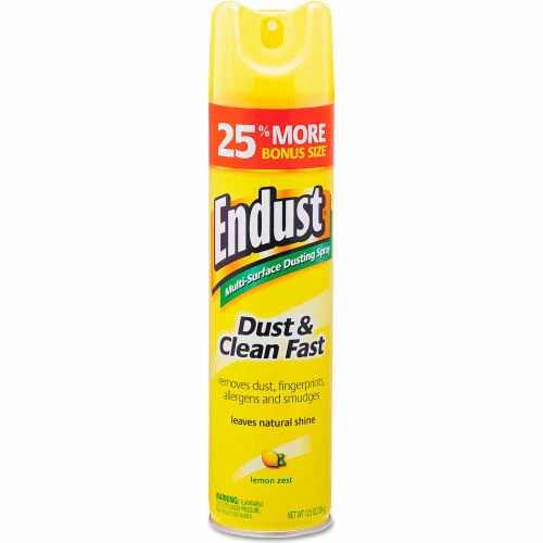 Endust Multi-Surface Dusting & Cleaning Spray picks up and holds dust, while also eliminating allergens, fingerprints, smears and smudges. The fast-acting and silicone-free formula works on just about any surface, leaving behind a natural shine and a refreshing lemon zest scent. Easy to use aerosol does not leave any residue or buildup.