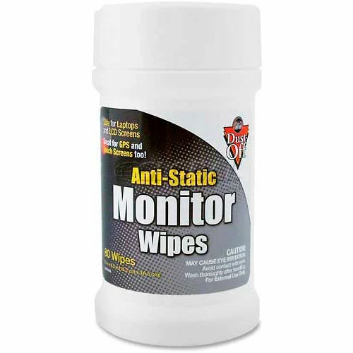 Dust-Off Antistatic Monitor Wipes are designed for cleaning most computer screens, laptop screens and LCD screens. Large surface of nontoxic wipe is premoistened with a quick-drying, streak-free, alcohol-free formula. Soft, thick, nonabrasive wipes leave surfaces static-free. Easy-to-use canister ensures wipes stay fresh.