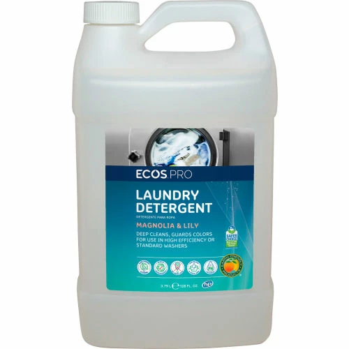 ECOS® is the best selling environmentally preferable laundry detergent in the United States Can be used in H.E. machines or standard machines. Will not fade color or reduce integrity of fabric. Contains natural coconut-based fabric softener. Made with only 100% sustainable, plant-based ingredients. Non-toxic formula does not contain dyes or synthetic perfumes, neutral pH, greywater and septic safe.