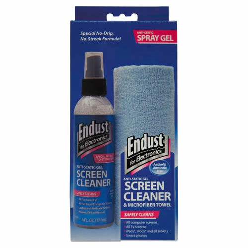 Spray gel is specifically formulated to safely and effectively clean LCD and plasma screens. Stays where you spray it; will not run down into sensitive equipment. Alcohol- and ammonia-free cleaner leaves screens streak free. Safe for use on all types of screens. Includes spray cleaner and low-lint microfiber cloth. Application: LCD Screens; Plasma Screens.