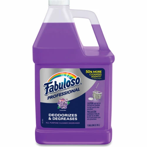Fabuloso Professional is an all-purpose cleaner and degreaser that is effective for a wide variety of cleaning applications. The Fabuloso Professional formula deep cleans to remove grease and soils while leaving a long-lasting fragrance. Its neutral pH makes product safe for surfaces. No rinsing step needed in floor cleaning application. UPS Shippable—Special packaging allows this item to be shipped via UPS. Application: All-Purpose; Bathrooms; Kitchen; Applicable Material: Ceramic; Fiberglass; Glass; Metal; Plastic; Vinyl; Hard Surfaces; Dirt Types: Grease; Soil; Scent: Lavender.