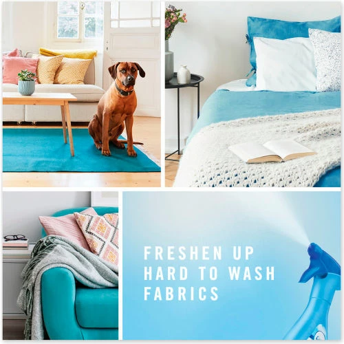 Doesn’t just mask odors, it cleans away odors from fabrics that you wish you could wash with OdorClear Technology, leaving your fabrics with a light, fresh scent. The fine mist works deep in fabrics, cleaning them of common odors such as pet smells, smoke, and body odors, helping to freshen the entire room. Perfect to use weekly on soft surfaces including furniture upholstery and rugs/carpets or simply to give clothing a needed refresh. Add to your regular cleaning routine. With Febreze FABRIC, uplifting freshness is simply a spray away.