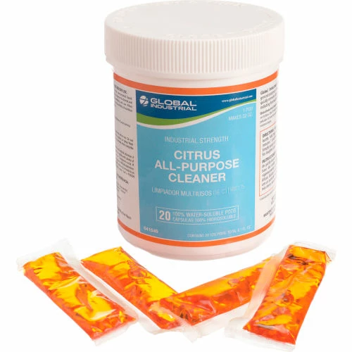 Eradicate fingerprints, dirt, and grime with the Global Industrial™ All-Purpose Cleaner. Simply drop one cleaner pack into the Global Industrial™ Trigger Spray Bottle (model 641550, sold separately). Formulated to clean treated wood, countertops, equipment, appliances, floors, and painted walls, this cleaner is ideal for use in private homes as well as commercial office and business settings. 1 Year Limited Warranty.