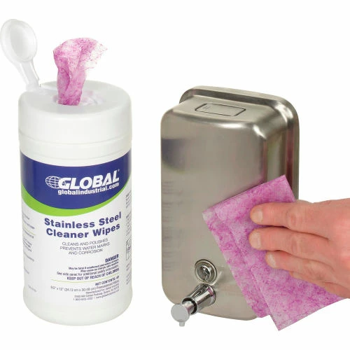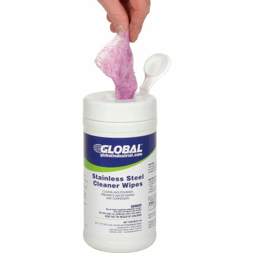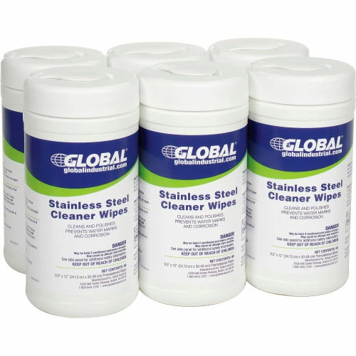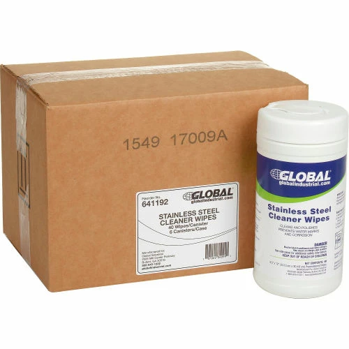 Global Industrial™ Stainless Steel Cleaner Wipes, 40 Wipes/Canister, 6 Canisters/Case