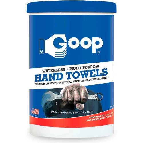 Goop Towels are perfect for a quick clean-up, with or without water. Goop Towels clean more than just hands, they work great to clean everything that requires wiping. You’ll love the effectiveness and fresh scent of the citrus-based cleaner in Goop Towels. The action insures a sanitary cleanup every time. Use Goop towels on the following things: bikes, boats, cars, computer, keyboards, machinery, shoes, tools, and vinyl. 90 ct. towels. Sold 6 per case.