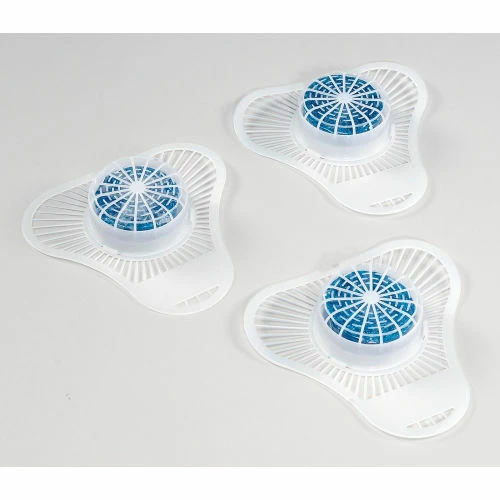 Enzyme block deodorizes, cleans and prevents scale buildup. Every flush tints water blue. Healthy bacteria continuously eliminate odors and maintain drain lines. Flexible screen traps debris. Lasts up to 1,500 flushes. Green Apple fragrance. Biodegradable materials. VOC compliant. Free from Phenol Ethoxylate surfactants and carcinogens. Free from chlorinated, butyl and harsh solvents. Free from ammonia and bleach compounds, phosphates and silicates. No phthalates and Alkylphenol ethoxylates. Recyclable packaging materials (plastic and boxes). Non-hazardous for shipment.