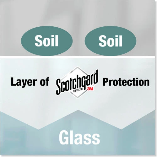 A streak-free, fast-drying formula that cleans and protects glass and other silica based surfaces (uncoated granite, ceramic, porcelain). Scotchgard Protector provides an invisible barrier between the surface and soils, making it more difficult for soils to adhere.
