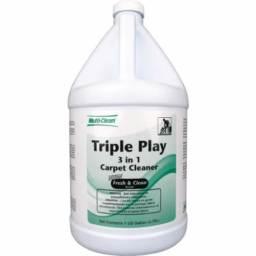 Triple Play is a concentrated, bio-enzymatic carpet cleaner for use in the solution tank of a hot water extractor. It is also used as a heavy duty pre-spray prior to extraction. The enzyme formula cleans and counteracts carpet odors. Triple Play may be used straight (without dilution) for removing urine or pet accidents stains and odors.