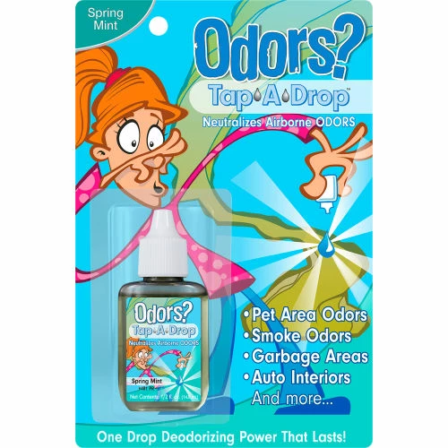 Nilodor Tap-A-Drop Bottle On Rack Card, Spring Mint Scent, 0.5 oz Bottle, 12/Case