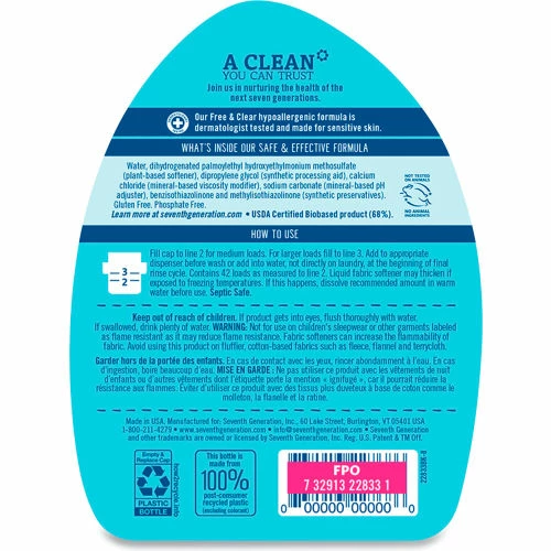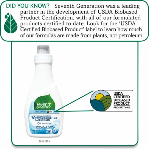 Formula uses plant-derived softening agents, so you can enjoy naturally soft clothes. Fights static cling and free of dyes and synthetic fragrances. Designed for standard and HE machines. Kosher Certified; Leaping Bunny Certified; USDA Certified Biobased 68%
