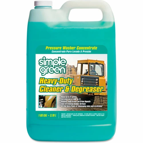 Simple Green Heavy-Duty Cleaner is a specially formulated, powerful pressure washing concentrate, designed to remove tough grease and grime deposits. This powerful formula was developed primarily to be used with pressure washing systems but can also be used for manual cleaning applications. It removes oils, grease, soot and ash, exhaust, sap, pollen, mold and mildew stains, road tar, and other tough soils.