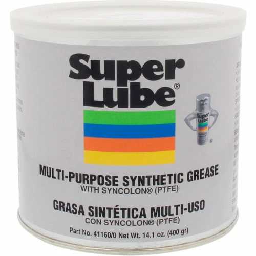 Super Lube® grease is a patented synthetic NLGI grade 2, heavy-duty, multi-purpose lubricant with Syncolon® (PTFE). Synthetic base fluids and the addition of Syncolon® (PTFE) micro powders combine to form a premium lubricant that provides longer life protection against friction, wear, rust and corrosion. Super Lube® multi-purpose synthetic grease is dielectric, food grade, clean and environmentally friendly. It offers good mechanical stability, does not evaporate or form gummy deposits. It will not melt or separate. There is no silicone in Super Lube® multi-purpose grease with Syncolon® (PTFE).it is safe for use in paint spraying and finishing operations. NSF registered food grade lubricant, rated H1 for incidental food contact. Made in the USA. Shelf Life of 5 Years. Case Quantity of 12. Warranty is 24 months from date of purchase.