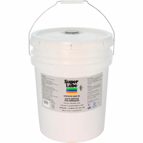 Super Lube® Synthetic Gear Oil is a USDA listed Food Grade lubricant, rated H-1 for incidental food contact. It is a clean, translucent oil with superior anti-wear and extreme pressure properties, suitable for lubricating the following: Spur, Helical, Herringbone, Rack and Pinion, Straight and Spiral Bevel, and Worm Gears. Excellent oxidation resistance, rust and corrosion protection and the ability to readily separate from water, make it ideally suited for Chain Drives, Worm gears, and Gear Boxes.5 gal pail Super Lube® Synthetic Gear Oil ISO 220