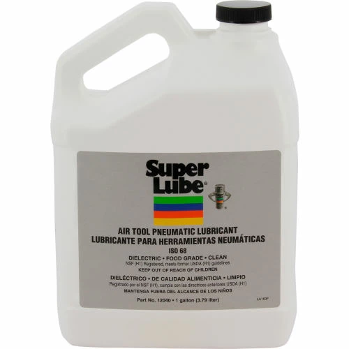 Super Lube® Air Tool Lubricant is formulated to meet the special requirements for industrial, household and agricultural tools. It absorbs water and eliminates any ice buildup and frost in air tools. Blended rust and corrosion inhibitors and a special base fluid oil minimize wear and allows operation of air tools at temperatures as low as -40F. 1 gal bottle Super Lube® Air Tool Lubricant