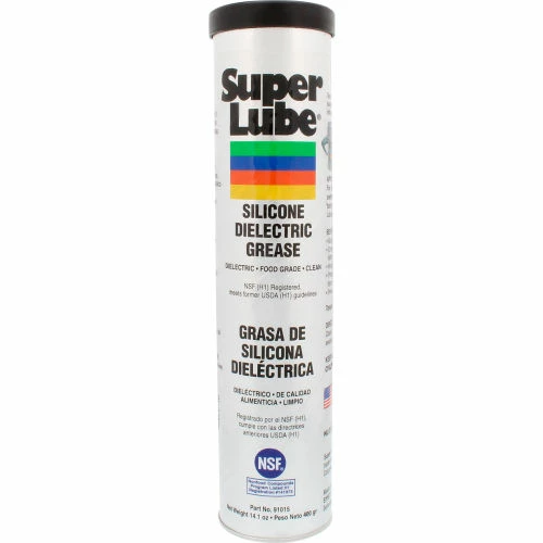 Super Lube® Silicone Dielectric Grease is a non curing Silicone compound utilized for sealing, protecting and insulating electrical components and connectors. Super Lube® Silicone Dielectric Grease is waterproof and protects against moisture and other contaminants in electrical connections, is translucent white, clean and clear in appearance and exhibits high dielectric strength and is compatible with most plastics and withstands temperatures from -40F to 500F. 14.1 oz cartridge Super Lube® Silicone High-Dielectric & Vacuum Grease