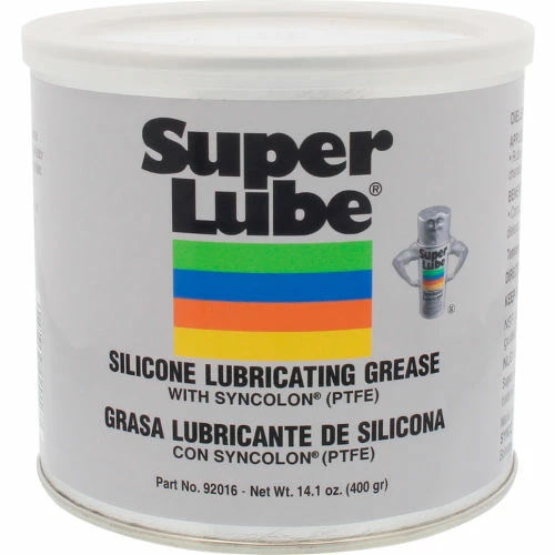 Silicone Lubricating Grease with Syncolon® (PTFE) has a wider operating range than petroleum based lubricants; excellent water protection and moisture barrier. Use on Plastic gears, plastic threads, as a damping medium for Dash Pots, lubricate O-Rings, electrical motor bearings and rubber components. Silicone Lubricating Grease withstands temperatures from -40F to 500F. 14.1 oz canister Super Lube® Silicone Lubricating Grease with PTFE