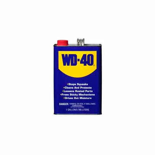 WD-40® Multi-Use Product is a trusted and proven problem solver that works so effectively on so many uses that it can be found in almost every shop and factory in America. Essential in any maintenance environment. WD-40® lubricates moving parts such as hinges, wheels, rollers, chains and gears. Offers excellent corrosion protection by protecting metal against moisture and corrosive elements, and penetrates to free stuck and corroded parts like nuts, bolts, valves and locks. Quickly removes grease, grime, adhesives, paint and much more. Displaces moisture to restore water flooded equipment, tools, engines, and more. 50-State VOC Compliant. One gallon can. Sold 4 cans per case.