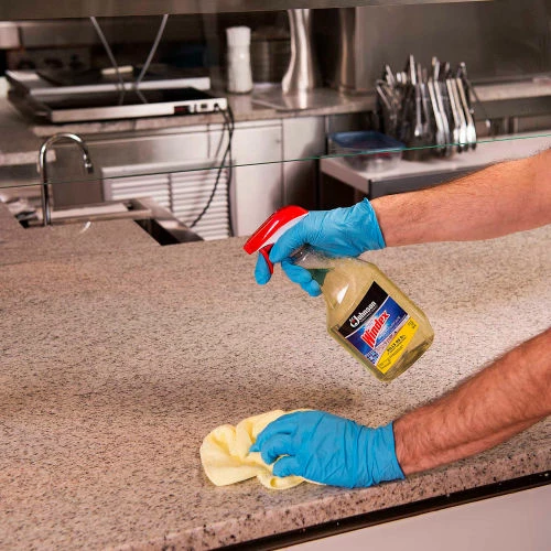 Works on bathroom surfaces, countertops, sealed granite countertops, sealed marble countertops (real or synthetic), exterior surfaces of appliances like microwaves, stovetops, toasters, etc., appliances with enameled paint, kitchen fixtures, stainless steel, glazed ceramic tile, glass, windows, plastic, vinyl and glass.