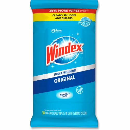 Windex® Glass & Surface Wipes are convenient for quickly cleaning windows, mirrors and much more. It’s the easiest way to get that famous streak-free clean. Won’t leave a film. Also cleans sealed marble, sealed granite, stainless steel, UV-protected windows, factory-installed low-E coated windows, glass frames and other glass décor, bathroom fixtures like those made of chrome, lead or flint glass, Plexiglas®*, Lucite®*, tile, plastic, vinyl and aluminum.