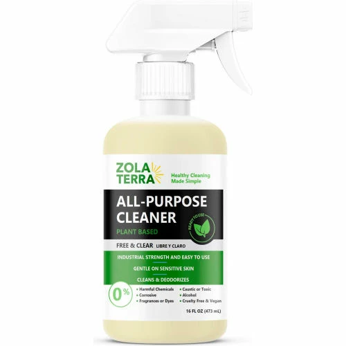 ZolaTerra General Purpose Cleaner for use on household surfaces like granite, wood, tile, countertops, and stainless steel. Safe for skin! ZolaTerra products are certified by NSF, Leaping Bunny, PETA Cruelty Free and Vegan and by the USDA as a Bio Preferred Plant Based Product.