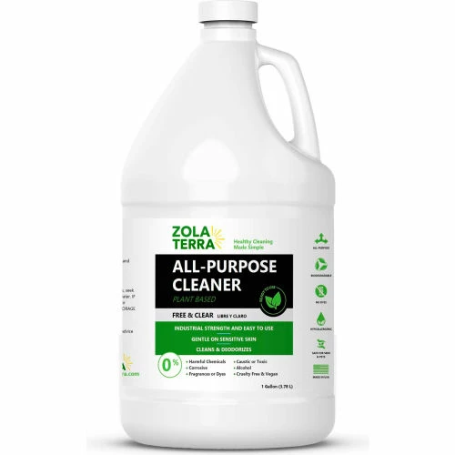 ZolaTerra General Purpose Cleaner for use on household surfaces like granite, wood, tile, countertops, and stainless steel. Safe for skin! ZolaTerra products are certified by NSF, Leaping Bunny, PETA Cruelty Free and Vegan and by the USDA as a Bio Preferred Plant Based Product.